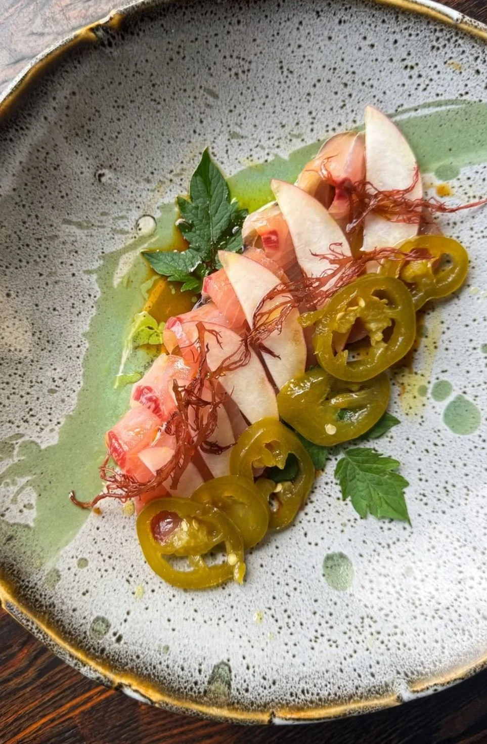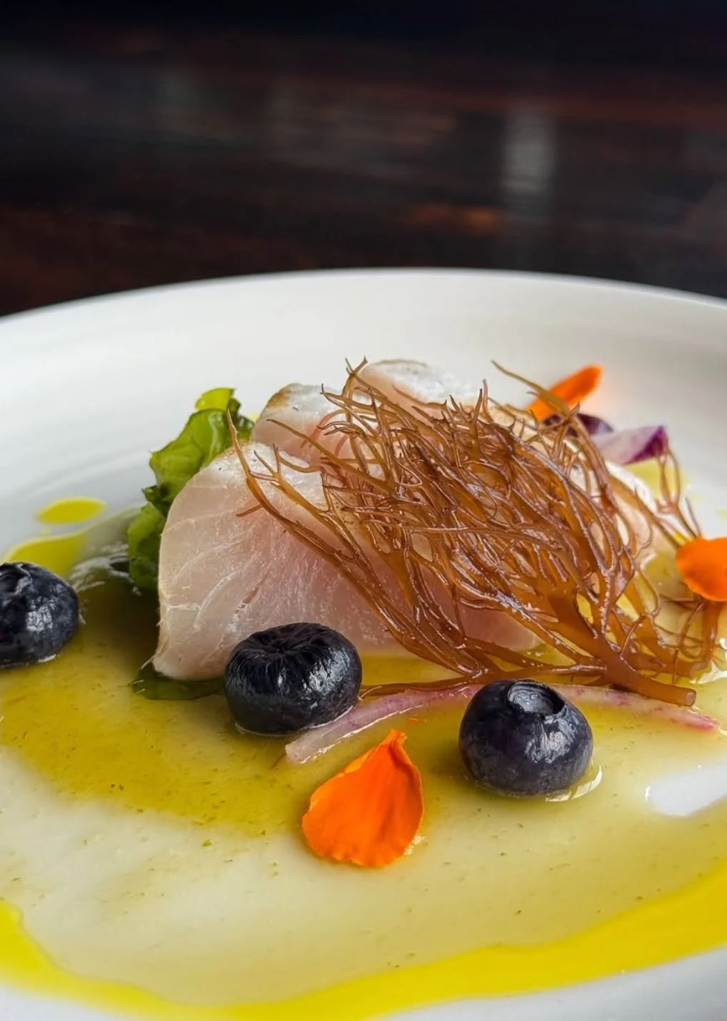That said, what the co-owner/operator of landmark Oceanside spots Wrench & Rodent Seabasstropub and Shootz Fish & Beer did best was 1) show how to use the entirety of a beautiful locally landed fish—including its eyes, heart, bone marrow, liver and even fins, bones and scales—to reduce waste and increase return; and 2) treat us to a Poseidon-grade seafood feast of snappy fresh sashimi, tender tartare, grilled cheeks, roasted collars, ribs, pastas, tostadas and more.