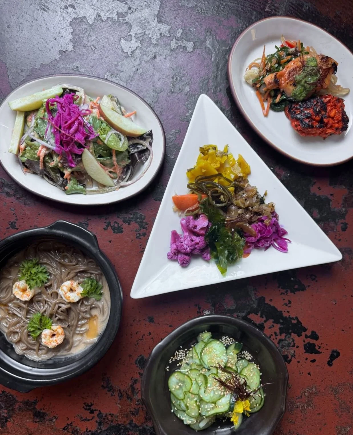 - sunomono, koji amazu- tsukemono- mixed greens, ginger miso- buckwheat noodles, lobster gravy, shrimp- sheepshead & kimchi with stir fry vegCome on in and get 'em, courtesy of Chef Davin Waite!